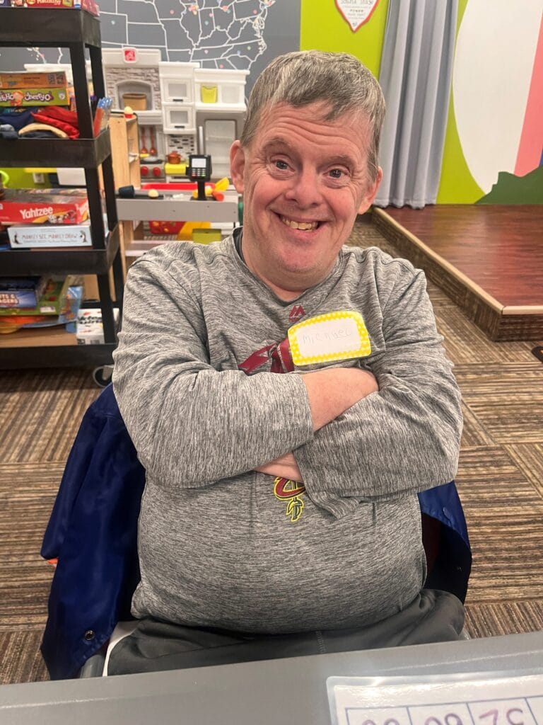 When Mike first walked through the doors of GiGi’s Playhouse Cleveland in September of 2024, it took only seconds to know he was home. That feeling was made clear almost immediately, not just by the way he lovingly shooed his mom out the door, but by the comfort, confidence, and ease with which he jumped right in. It also didn’t hurt that Mike spotted a familiar face from elementary school, our very own David. Or that one of our volunteers instantly recognized him as “Uncle Mike” from countless baseball games her sons once played. From every angle, the signs were there: Mike was always meant to be here.